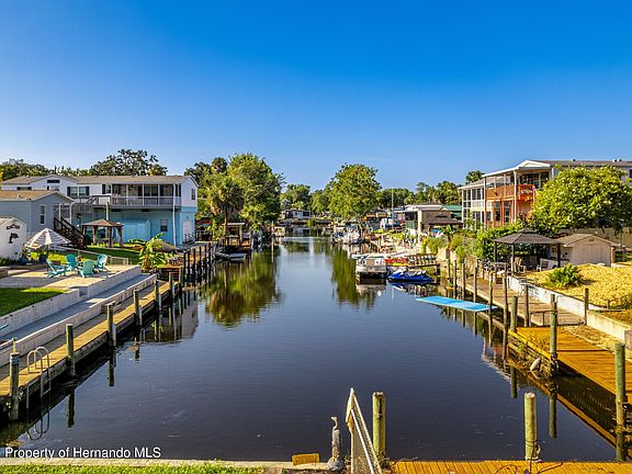 NEVER FLOODED not even in 2024 !! MERMAIDS & MANATEE.. on the Crystal Clear Waters of Weeki Wachee! Kayaking.. Paddle Boarding !! Manatees that are frequent visitors in the Spring Fed Fresh Water canal in your backyard. Eel Grass attracts not just the Manatee but Turtles & Fish too. Quick Access to the Main River + Access to the Gulf of Mexico. SHORT TERM RENTALS ARE ALLOWED IN THIS COMMUNITY! Large Home & Plenty of Parking makes this a great potential destination for guests. 150 ft of Water Frontage. 2000 Built Seawall & Kneewall. 70 ft Dock. Beautiful Pavered Patio & Covered Patio for Entertaining. Decorative Outside Lighthouse + Dolphin Fountain that provide a Nice Ambiance. Come See Your New REMODELED Waterfront 2 Bedroom 2 Bathroom + Office Home located on 2 Lots. FURNITURE IS NEGOTIABLE. There is lots of parking space with a Circular Driveway & a RV PAD with 50 amp electric + a Golf Cart/Riding Lawn Mower Garage. This home has NEVER FLOODED.. Tastefully Remodeled for the current owner. Come through the front door to a Covered Porch with a Closet. Open & Bright Floor Plan with DuraLux Performance Waterproof Luxury Vinyl throughout the home. Dining Room is spacious with Plantation Shutters. Beautiful Completely Remodeled Kitchen offers Solid Wood Soft Close Cabinets & Counters, Grey & White GRANITE Counters, Shell Mother of Pearl ''Mermaid Tail'' Tile Backsplash, Kitchen Island & Frigidaire Gallery Stainless Steel Appliances. Living Room is Spacious with Plantation Shutters + Sliding Glass Doors that go out to the 14 x 24 Florida Room! The Possibilities for this Room.. Additional Dining & Living.. Or a Game Room.. Master Bedroom is also off of the Living Room. Love the Walk In Closet with Soft Close Drawers, Organizer & Jewelry Armoire. The Remodeled Master Bathroom has Dual Sinks, Porcelain Top & Wood Soft Close Cabinet plus Mirrored Lighted Medicine Cabinet + Walk In Shower. Laundry Room with Washer, Dryer + Cabinet off of Master Bedroom plus an Outside Door perfect for coming in from the boating or kayaking with your wet clothes. Off of the Kitchen is the Office currently used as additional sleeping space, Guest Bedroom & Remodeled Guest Bathroom with Bamboo Wood Cabinet with Porcelain Counter Plus Tiled Walk In Shower. This home provides lots of storage inside & out. Outside has a Shed, Workshop & Garage. Side & Back are Fenced. Come See! You will Not be Disappointed.