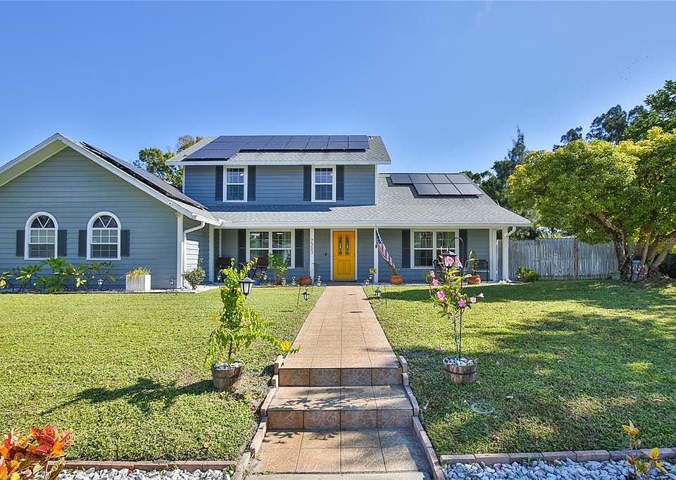 Welcome home to this stunning residence that perfectly blends elegance, space, and functionality. From the moment you step through the front door, you’ll be greeted by grand columns, detailed crown molding, and gleaming tile floors that set the stage for refined living. The expansive open layout is designed for both comfortable everyday living and stylish entertaining. Featuring 4 spacious bedrooms and 2.5 baths, this thoughtfully designed floor plan offers room for everyone. The downstairs master suite is a private retreat, complete with a luxurious jacuzzi tub, separate shower, and an expansive walk-in closet. Host family and friends in the inviting family room, or unwind by the fireplace in the cozy living room. The chef’s kitchen is sure to impress, featuring abundant cabinetry, generous counter space, and a breakfast bar perfect for casual dining. Upstairs, discover three additional bedrooms, a full bathroom, and a versatile den or office area—ideal for remote work, study, or hobbies. Step outside to enjoy Florida living at its finest in the large screened-in lanai—perfect for morning coffee or evening gatherings. The fenced backyard offers privacy, space to play, and room to garden, while the oversized two-car garage provides ample storage. Located in the sought-after Whitfield Estates community, this home truly has it all—space, style, and comfort in a premier location. Don’t miss your chance to call this beautiful home your own!