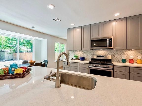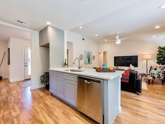 On quiet street in coveted '23 amongst established neighbors & well-kept homes. This home boasts the ideal floor plan, w/gorgeous flooring & lighting throughout. Freshly remodeled kitchen w/custom cabinets, quartz ctops, large sink, undermount lighting, stainless apps & breakfast bar. Open concept kitchen, dining & 2 living rooms provide ample area for entertaining. Updated bathrooms feature newly installed tile surrounds (to the ceiling), plumbing fixtures & vanities. Extensive reno w/new windows, elec. panel, PVC drain lines. The large back yard offers so many options! Easy access to highways, downtown & Mueller.