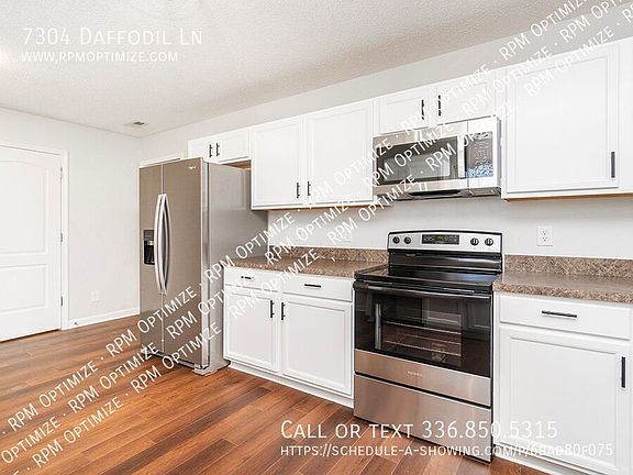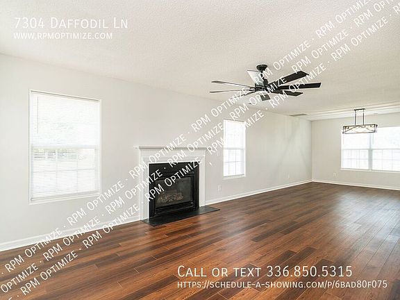 Welcome to this beautiful three-bedroom, two-and-a-half-bathroom home in the charming town of Whitsett, NC. Perfectly situated on a desirable corner lot, this two-story residence features a large fenced backyard with a firepit, offering plenty of room for entertaining, relaxing, or simply enjoying time outdoors. Inside, you'll appreciate the natural light and updated design, highlighted by wood-tone luxury vinyl plank flooring that flows seamlessly throughout. The kitchen is equipped with new stainless steel appliances, a spacious pantry, and a cozy breakfast bar. A formal dining room and bright kitchen eat-in area make gatherings easy, while the living room, centered around a gas fireplace, provides the perfect place to unwind. Upstairs, the oversized primary suite with a tray ceiling feels like a true retreat. It includes a sitting area, generous walk-in closet, and spa-like bathroom featuring quartz vanities, a garden tub, and a glass shower. Two additional bedrooms with walk-in closets and a versatile loft provide flexible space for work, play, or hobbies. A washer and dryer are also conveniently located upstairs.