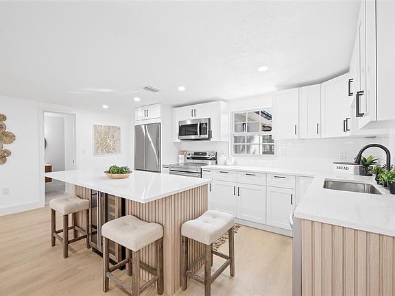 NEW PRICE ALERT - Turnkey, updated property that supports a wide range of financing!! Step into a MOVE-IN-READY 3-bedroom, 2-bath home with a one-car garage and clean curb appeal that immediately feels welcoming. The covered front porch sets the tone, and inside, the open layout connects the living, dining, and kitchen areas in a way that makes the home feel bigger and more functional than the square footage suggests. The kitchen stands out with new countertops, custom cabinetry, stainless steel appliances, and a wine fridge—an upgrade most homes in this price range simply don’t offer. The primary suite gives you the privacy and comfort buyers want today, with a sleek en suite bathroom and a walk-in closet. The two additional bedrooms sit apart from the primary, giving guests, family, or a home office their own space. Out back, the covered, screened-in porch becomes an extension of your living area and overlooks a fully fenced yard that works perfectly for pets, kids, or quiet weekend downtime. The major systems are all recent—roof (2021), HVAC (2022), and water heater (2024)—which removes the typical “what’s going to break next?” stress for years to come. With the beach at Robert K. Rees Memorial Park less than 10 minutes away and quick access to local restaurants, shopping, and commuter routes, this home delivers an easy lifestyle in a location that keeps getting more popular. Homes this clean, updated, and trouble-free don’t sit long, especially at this price point.