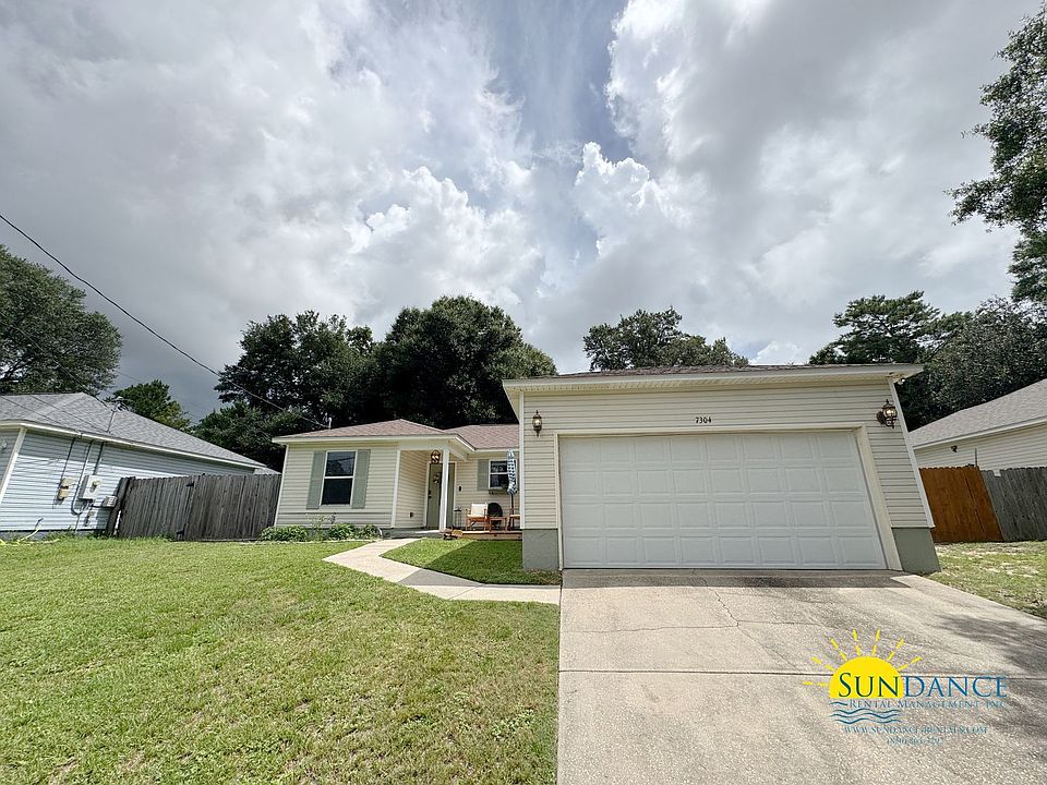 Located in one of Navarre's fastest growing neighborhoods off of Highway 87 this gorgeous 3 bedroom, 2 bathroom home offers an attached 2 car garage along with driveway parking. This property is a true must-see just minutes from shopping, beaches & dining. Hurlburt Field is a 20-minute drive & if you are a traveler, Interstate 10 is just a 15-minute drive North. With a split bedroom floor plan, this home boasts ample space in the main living areas while allowing for plenty of privacy in the bedrooms. The full kitchen is spectacular with stainless appliances, a pantry, and a breakfast bar that overlooks the dining and living areas. The living room is spacious and features lovely tile flooring with a vaulted ceiling. The roomy primary suite offers a large walk-in closet and tub/shower combination with nice tile accents. Two additional good-sized bedrooms, another full bathroom, and a laundry space with a washer and dryer as-is complete this marvelous property. Outside you will enjoy an open back patio with firepit and fully fenced yard perfect for relaxing. You do not want to miss the chance to call this stunning home yours! Extra Garage Fridge and Security System are provided AS-IS. Lawn care and pest control included. No smoking is permitted. Pets are permitted with a $300 per pet non-refundable pet fee (Subject to Owner Approval) In addition to the rental amount, all Sundance Rental Management residents are enrolled in the Resident Benefits Package (RBP) for $25.00/month which includes liability insurance, credit building to help boost the resident's credit score with timely rent payments, and much more! The benefits can be found on our website under Tenant FAQ.
