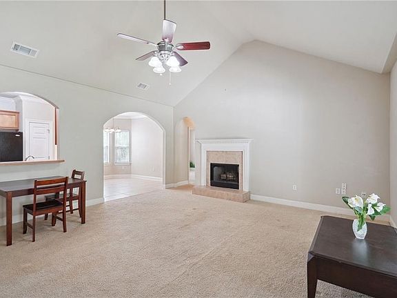Enjoy country living at it's best in this spacious, cute home on .78 acre. NEW ROOF! Large living area with cathedral ceiling and fireplace. Kitchen features an abundance of 42" wood cabinets. Bonus room/sunroom off of kitchen offers many possibilities. Large primary suite with tray ceiling and crown molding; primary bath with spa tub, separate shower, vanities and 2 closets. Oversized fenced backyard featuring raised garden boxes with irrigation system; grow vegetables, herbs or just some pretty plants. Relax on the large back deck. Added parking area in front. Flood zone C. Refrigerator, washer, dryer and sheds remain.