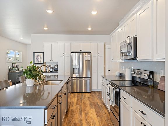 Discover this pristine duplex-style condo just minutes from Bozeman, nestled in the charming community of Churchill! Step inside to find a generously sized primary suite on the main floor, complemented by a luminous stainless steel kitchen adorned with quartz countertops and abundant pantry space. Modern white cabinetry graces both the kitchen and bathrooms, accentuating the home's contemporary aesthetic. Boasting three bedrooms, three bathrooms, and separate living areas on both levels, this residence offers versatility and comfort. With approximately 2,000 finished square feet on the main and second levels, plus nearly 1,000 square feet of roughed-in and plumbed space in the basement, there's ample opportunity to tailor the home to your preferences and build equity. Enjoy the convenience of HOA-provided lawn care, exterior maintenance, and snow removal, facilitating effortless country living in a sought after school district (Amsterdam Elementary and Manhattan High School). Additional features include central air conditioning, an oversized heated two-car attached garage, and access to a community park. Don't miss out—schedule your showing today!