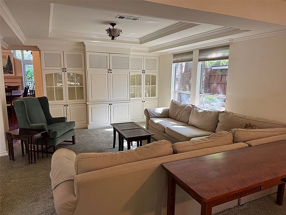Incredible Investment Opportunity awaits in this 6 bedroom home located just 15 minutes from UNT and TWU. The main floor includes a large open formal living and dining room as well as a lovely living room and open kitchen with vaulted ceilings and a fireplace. The kitchen was lovingly designed with a huge center island including tons of storage and lit glass front cabinets to display glassware or collectibles. Just off the kitchen you'll find a cozy sunroom overlooking the secret garden style backyard with a custom victorian style playhouse. Relax on the built in patio seating while making dinner on the outdoor built in grill. The primary bed and ensuite bath are on the main floor while 5 more bedrooms await you upstairs. You'll find incredible built ins, a library room with a closet that has been converted into a darkroom for the photography enthusiast, and a game room with tons of light previously used as an art room. The storage options in this house are unrivaled even in the garage where you'll find extensive cabinets. A little TLC and vision will go a long way in this well loved, single owner home. NO HOA! Sold AS IS.