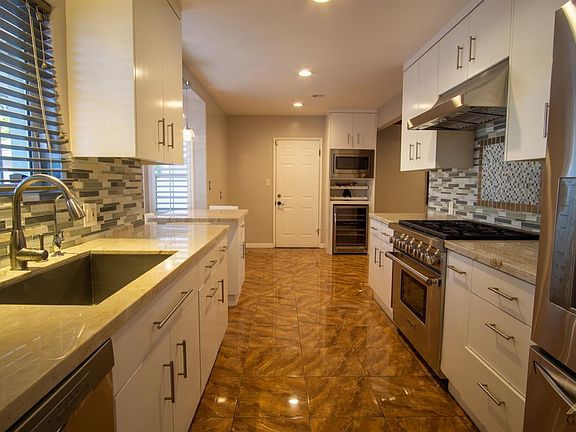 Traditional Stunner in the heart of the Valley! Thoughtfully upgraded, the inviting floor plan features a remodeled pro-grade kitchen that incls newer cabinets, SS appl, 6-burner Wolf stove, lrg under-mount sink, dishwasher, wine fridge, built-in microwave, Granite counter-tops & a built-in breakfast island that overlooks the manicured front yard. A lrg/bright formal dining w/exposed wooden beam ceiling, recessed lighting &a granite bar. The fam room inclds a fireplace, hardwood flrs, dual pane sliding doors w/plantation shutters that lead to a covered patio. The master BA has been completely remodeled w/marble tile, a custom vanity &frameless glass shower doors. You'll be delighted to find a sun-room w/wall to wall windows; bring the outdoors in or make this the perfect workout room. Back yard incls a pool, BBQ/Kitchen that's under a pergola w/3 burners cook top &sink. Impeccable & low maintenance grounds.Owners paradise w/tons of charm