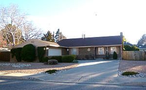 Mossman Magic at its finest in beautiful Stardust Skies Sub'd near Sandia High School! Original owner has lovingly cared for this All Brick home - all original square footage-no additions! BIG Country kitchen has lots of cabinets, counterspace and sunny breakfast nook. Formal living and dining areas on the main floor (This home looks like single level from the front but it is Tri Level). GORGEOUS Hardwood floors on main and upstairs levels. 3 HUGE bedrooms upstairs with full bath. 2 closets + built in storage in all 3 bedrooms. Master Bedroom a few steps downstairs. Spacious den w/ gas log fireplace and french doors overlooking flagstone patio and lovely, private backyard. Backyard access on both sides - this is a big lot, perfect for that growing family.