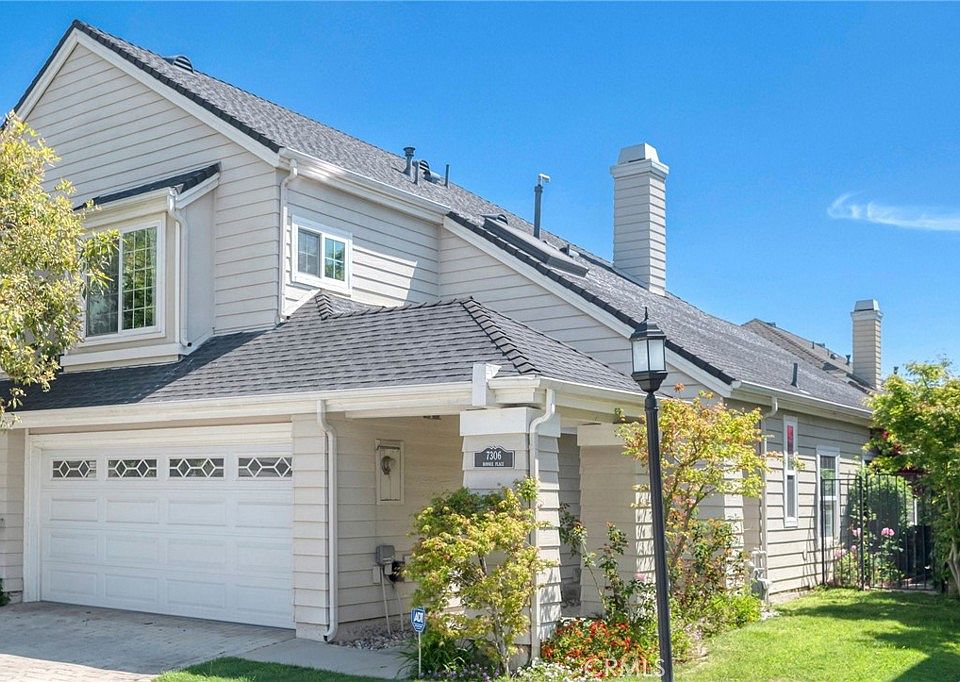 Don't miss this rare find! A detached townhome in a gated community with its own PRIVATE POOL! And with a low HOA of $230.25/month, and only one common wall, this two-story Cape Cod traditional home has everything you could ask for - and more! The living room boasts of expansive, 17-foot vaulted ceilings, a wood/gas burning fireplace as well as convenient built-ins and abundance of natural light. The spacious ground floor primary bedroom with its high ceilings, dimmable recessed lights and walk-in closet, has an exquisitely renovated en suite bathroom featuring an elegant jetted soaking tub, Crema Marfil marble tile and luxurious oil rubbed bronze fixtures. Upstairs you will find two additional bedrooms separated by a deluxe full bathroom with marble tile, oil rubbed bronze fixtures and a separate dressing table with direct access to one of the bedrooms. There is a half bath at the home's entrance, premium laminate flooring throughout and a large skylight that naturally illuminates the winding staircase, further highlighting this property's open floor plan. But it gets better! The fully fenced yard features its own private swimming pool - unheard of for a townhome - and it has been upgraded with a saltwater system newly installed in 2021. Perfect for entertaining or your own peaceful sanctuary, this outdoor patio space has a planted garden bed and beautiful views of orange and persimmon trees. The property has an attached two-car garage, with parking for two more cars in the driveway and ample additional guest parking inside the development. Inside the remote controlled garage you will find a matching LG Smart Washer/Dryer set purchased in 2021 as well as extensive wall-to-wall shelving for plenty of storage. The home's other numerous features include dual pane windows throughout, a Nest thermostat, Eufy doorbell security system, a whole-home water softening system, and reverse osmosis and alkaline water taps in both the kitchen and upstairs bathroom. This charming, gated community with its cobblestone streets has 36 homes, well maintained grounds and a very low HOA. Conveniently close to shops, restaurants and public transportation, this home is truly one-of-a-kind! Come seize your opportunity to own in this wonderful community!