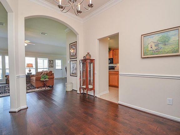 Beautiful, well maintained 1 story, 3 car over-sized garage.Located at the end of a cul-de-sac with walking distance to the Rec Center/pool, clubhouse and playground. Home has 3 large bedrooms, 2 full baths, open floor plan with dining and family room and breakfast area. Gourmet kitchen with island, granite,desk area,gas range, nice size pantry. Wood floors though out and a gas fireplace.Laundry leads out to huge garage. Covered patio with ceiling fan.
