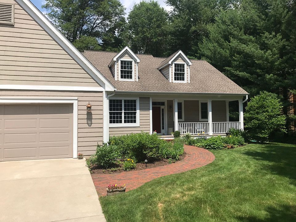 A Cape Cod look. Brazilian Cherry floors in entry way, living room, sun room, master bedroom and dining room. 3 car garage. Patio off 4-season sun room out back. High ceilings. Central Air. Ceiling fan in sun room.