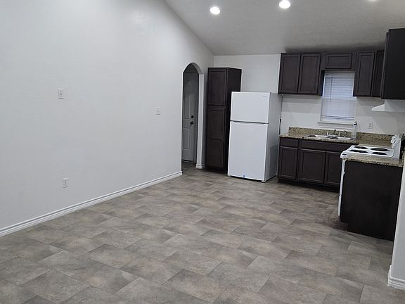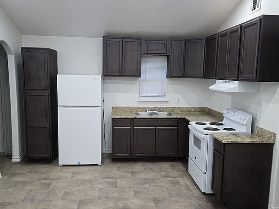 Recently renovated energy efficient, new flooring with fridge, stove and granite countertop in kitchen. Covered front patio with 2 car driveway and a back porch. Has a large backyard and is located 10mins from HEB and Kroger.