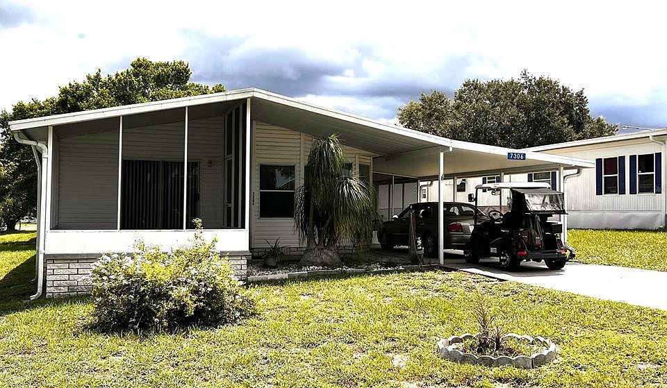 Call 7306 Score Street your new address here in Florida in the High Point Community. Great 55+ golf community with low HOA fees to allow you to enjoy the best of Florida. This 2 bedroom 2 bath home has been well maintained and is move in ready. Beautiful kitchen with just enough natural light from the Florida sun to make you feel right at home. Imagine sitting on the front screened in porch enjoying a delicious meal and your favorite drink. Newer A/C, refrigerator, dishwasher and washing machine. There is a storage area for your lawn and gardening tools. It also has a fenced in rear area of the yard for your fur babies to roam freely and safely. Nice covered carport and long driveway for your golf cart or other toys. HOA dues are approximately $45 monthly. The High Point 55+ community offers so many amenities to enjoy including a heated pool, shuffleboard, tennis, golf and the famous sport of pickleball. It is also centrally located close to major highways, restaurants, entertainment, shopping and hospitals.