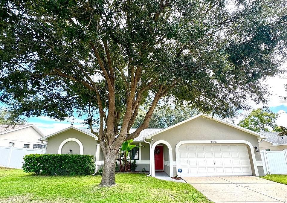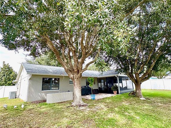 Pond front Paradise in Woodridge Estates! Welcome to this impeccably maintained 3-bedroom, 2-bath pond front home in the highly desirable, deed-restricted community of Woodridge Estates. From the moment you arrive, you'll appreciate the pride of ownership and thoughtful updates throughout. Enjoy panoramic water views from your screened lanai, spacious brick paver patio, or the fully vinyl-fenced backyard—perfect for relaxing, entertaining, or casting a line in the well-stocked pond filled with largemouth bass! Bonus: the flat-screen TV on the lanai conveys with the home for your outdoor enjoyment. Inside, the home boasts a split-bedroom floor plan, vaulted ceilings that enhance the open feel and a beautifully updated interior. Recent upgrades include stylish updated bathrooms, newer hand-scraped engineered wood flooring, stainless steel appliances, stainless steel farmhouse style kitchen sink, fresh exterior paint, and a NEW ROOF installed in 2025. The kitchen features a breakfast bar that opens to the dining area—great for casual meals or entertaining. Additional features include: Water softener system, Washer and dryer included, Generator transfer switch already installed and a 1-year home warranty included at closing for your ultimate peace of mind. All this, plus you're just a short drive to Sims Park and the charming shops, dining, and entertainment of downtown New Port Richey. Best of all—this home is NOT in a flood zone. Homes like this don’t come along often. Schedule your private showing today and start living the Florida lifestyle you’ve been dreaming of!