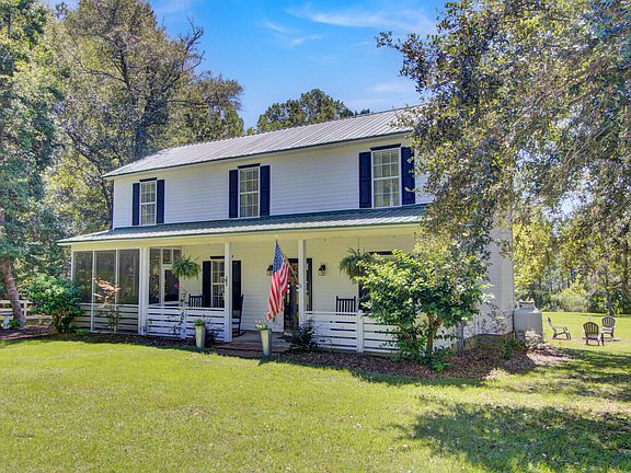 This Farmhouse style, Lowcountry retreat nestled on 2+ acres with direct water access to Awendaw Creek is a MUST see. The property includes a boat shed close to the adjacent community boat landing and PRIVATE DOCK on the tidal creek. Water depths are approximately 4- 8 feet, tide depending. This home is conveniently situated near town, yet tucked away from the hustle and bustle. The home has a full front porch and screened in porch along with a detached garage, workshop, and shed. Located on the 1st floor one will find the kitchen, living room, and dining area. The kitchen features a spacious island, wood countertops, and elegant white subway tile. While there is a designated dining area, the screen porch stands out as the ideal spot for dining, birdwatching, or simplyunwinding. The family room provides a warm and inviting atmosphere, complete with a gas log fireplace. There are also two exit points from the back of the home to the back of the property. The master suite along with the additional three bedrooms are situated on the upper level. The spacious master bedroom has two closets and an ensuite bathroom. The backyard features a dedicated fire pit area and plenty of open space leading to the water. Enjoy watching morning sunrises or evening sunsets from your private dock. A boat shed and the community boat ramp are located adjacent. Well-maintained and thoughtfully updated, the metal roof was put on in 2015 and the HVAC system replaced in 2018. A brand new water filtration system has been added to the well: Ecowater ECR 3700 Water Conditioner, Hydrogen Peroxide System and ERO 385E Reverse Osmosis System.