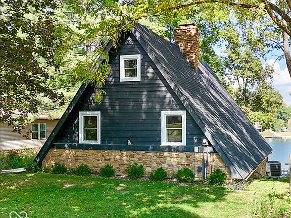 Welcome to this 2,368 square ft A-frame lake front home updated with dark stain, newer roof, and gutters. Thoughtful updates and additions provide modern amenities while maintaining the cottage charm that the original builder intended. Upon entering the main level of the house there is a large family gathering space with a stone fireplace, newer vinyl plank flooring, and cathedral ceiling original to an A-frame style house. Exit the newer sliding glass doors to an expansive deck overlooking Cordry Lake. In addition to the main level family room there are two light-filled carpeted bedrooms, two hall linen closets and a full bathroom. Knotty Pine doors and wood trim throughout highlight the cottage "feel" of the home. The stairs, adjacent to the stone fireplace, lead to the upper-level carpeted vaulted loft with natural light and space for sleepovers, friends, and family. The large wooden beam catwalk from the loft leads to a cozy upper deck. Stairs behind the fireplace lead to the lower, ground level of the home. Notice the second stone fireplace adjacent to the family room, new vinyl plank flooring and kitchen with newer cabinets and custom island with butcher block top recycled from the original kitchen. This lower level features a full bathroom, laundry, and storage area in addition to two newer sliding glass doors that lead you to all the amenities of lakeside living i.e., covered patio with ceiling fans, composite deck with cable railings and adjoining firepit. In ground stairs lead to the composite dock, boat house with electric boat lift, and swim deck with direct access to the beautiful clear blue water. The dock, a new addition to the property in 2019, enjoys warmth of the morning sun and cooling shade on hot afternoons; enjoy your evening boat cruise around the lake and then finish the day with an outdoor fire in the firepit overlooking the lake. Memories to be made! The property has ample storage both inside and outside and parking for many guests.