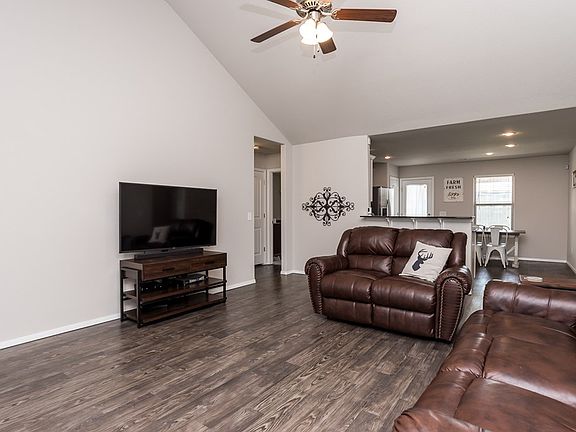 Beautiful home in amazing neighborhood and location. Close to schools, shopping, and dining. Amenities include pool, clubhouse, softball, and basketball! This home features a spacious and open floorplan, perfect for entertaining. Wood vinyl floor throughout. Vaulted ceilings. Eat-in kitchen has stainless appliances and access to the covered back patio which is a perfect outdoor living space. Privacy fenced backyard. Large master bedroom has attached bath and walk-in closet. Three guest bedrooms offer plenty of space. This home is a must see! Central location to all the best NWA has to offer!
