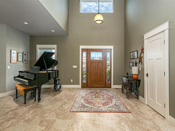 Welcome home to Sanderson Heights! You will fall in love with the serene and peaceful setting this 1 acre property offers, located in a quiet neighborhood, yet just minutes away from city amenities. This exceptional single level home offers 2584 sq ft, with 3 bedrooms, 2.5 baths, and a wonderful bonus space with bathroom above the shop. Upon entering, you will notice the amazing attention to design and detail, featuring a tiled and vaulted entry, great room with gorgeous gas fireplace, large windows, and a lovely coffered ceiling. The kitchen is designed perfectly for the chef and those who love to entertain, offering a large island with breakfast bar, granite counter-tops, 2-toned cabinetry, full tile back-splash, stainless steel appliances, and large dining area with access to the patio. Take in the views of the immaculate grounds from almost every room in this amazing home. Retreat into the spacious master suite and you will find a spa like bathroom with a large custom tiled shower, soaking tub, dual sink vanity, heated floors, and walk-in closet. Even the laundry room is impressive in this home, you will love all the storage cabinets, utility sink, and great counter space. This home was built with extra energy efficiencies, extra insulation, solar panels, and also includes whole house surround system, security system, and new exterior paint. This dream property not only offers an attached garage, but also RV parking with plug in, and a large detached heated shop, so you will find great space for all your projects and storage needs. If you love to spend your days outdoors, then surround yourself with the pristine landscaping and phenomenal views, and enjoy the water feature, hot tub, putting green, and large patio area. This stunning property truly has it all! ~All agents and buyers are required to wear face masks at all times. Only 6 people total allowed in the homes at a time. All agents and buyers are to maintain 6 foot separation while on site and follow all other social distancing protocols.