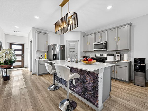 Welcome to 7307 Teton Creek Trace – a beautifully designed 4-bedroom, 3-bath residence located in the desirable Lakeview Retreat community of Richmond, TX. Built in 2021, this modern two-story home offers an open-concept layout that seamlessly connects the living, dining, and kitchen areas—perfect for both everyday living and entertaining. The gourmet kitchen features granite countertops, stainless steel appliances, and a large island that opens to a bright, inviting family room. The primary suite is conveniently located on the first floor and includes a spa-inspired bathroom with dual vanities, a soaking tub, and a separate shower. Upstairs, you’ll find a spacious game room and three additional bedrooms, ideal for family or guests. Enjoy the home’s energy-efficient design and smart home features, along with a private backyard perfect for gatherings or relaxing outdoors. Community amenities include a sparkling pool, playground, and scenic walking trails.