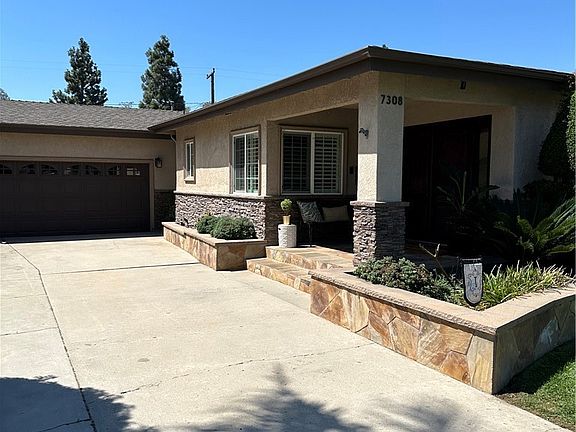 This beautiful single-story home was rebuilt in 2005 and is located in North Downey near Rio Hondo Golf Course. The home is graced with granite countertops, recessed lightings throughout, 3 skylights, fire sprinklers, all french style double pane windows, plantation shutters, luxury cherry hardwood plank flooring, crown moldings, and custom built-ins all throughout home. Great flow - open floor plan. Open living room with high ceilings. Kitchen is rich with mahogany wood cabinetry overlooking the side backyard’s vinyl patio, as well as an everyday dining table, and stainless appliances. Primary suite features a private bathroom with a separate bath tub, shower, sink, walk-in closest and ample closet space. There are also three additional bedrooms, 3 bathrooms and all have granite sink top, a cozy family room, separate living room and formal dining room. Gorgeous front door accompanied by stone entryway and roof gutters. The backyard is perfect for entertaining with night lights, cement lounging patio, window awnings and a lush lawn. Home is located on a friendly and quiet street. Not far from Downtown Downey — plenty of entertainment, restaurants, and night life.