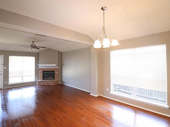 Nice home! 3 bedroom home with split bedroom arrangement. Wood laminate floors in formal dining and living area. Breakfast area with bay window in kitchen. Corner fireplace. Privacy fenced backyard. Separate shower and tub in master bath plus double sinks. 2 car garage with opener. Pass thru window from kitchen to formal dining room. Renter is responsible for utilities, rental insurance. No Smoking allowed.