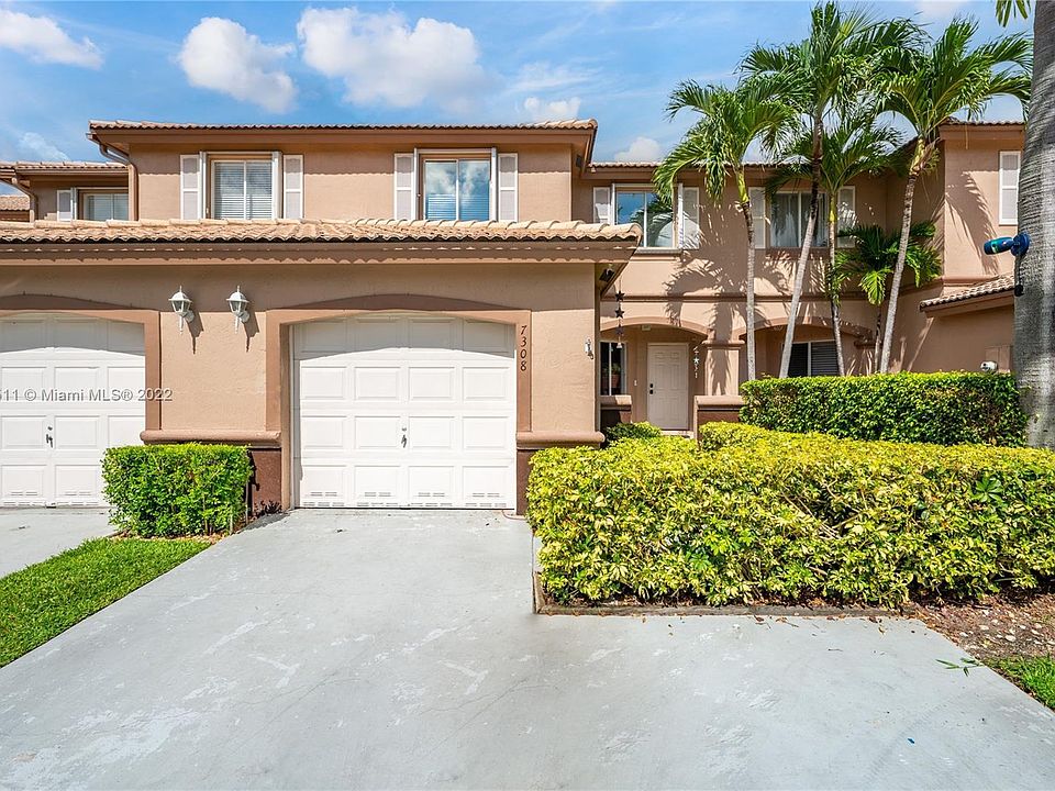 Welcome to this charming 3 bed 2.5 bath + Den townhome situated in the heart of West Kendall near A rated schools. This home features kitchen with dark wood cabinets and granite counter tops, S/S appliances, tiled flooring downstairs and newer life proof laminate flooring upstairs. Ledger stone accent wall with crown molding on downstairs TV wall, both bathrooms upstairs renovated in 2020, all bedrooms located upstairs plus den which could be converted to a bedroom or office space. Two car driveway and one car garage with storage space, guest parking available. Cozy backyard has a canopy for shade and costume built seating furniture. Private community pool.