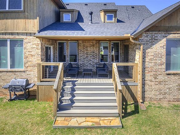 1% lender credit available via Audrey Taylor with the Weston Team! Call agent for more details! Former Parade of Homes WINNER in the desirable Edmond School district. Featuring vaulted ceilings, warm wood floors, wood beams, and an open formal dining room perfectly positioned near the entrance — an ideal home for entertaining. The main living is a spacious, light-filled room boasting a stone fireplace with mantle, tall ceilings, and large windows. Truly the heart of the home is the chef's European-inspired kitchen with stone walls, glass-front cabinets, open shelving, and gorgeous honedgranite. The kitchen also includes and spacious 2nd dining area and large walk-in pantry. A charming mudroom with brick-paved flooring offers functional storage while maintaining the home’s refined European character. The home office includes French doors, built-in shelfing, and direct access to the covered patio. The primary bedroom has a vaulted ceiling adorned with wood beams, direct patio access, and adjoins a spa-like en suite with soaking tub, walk-in shower, dual vanity, and generous closet with built-in storage. The first level offers a mother-in-law plan with bedroom and bathroom on its own wing. The second level includes a flexible bonus room, full bathroom, and two additional bedrooms. The house sits on a wide lot that offers a large side yard with mature trees and plenty of room for play - it also adjoins a greenbelt to the west that leads to the community park. The amenities also include a fishing pond and walking trails. Within minutes I35, and close proximity to shopping, eateries, and entertainment.