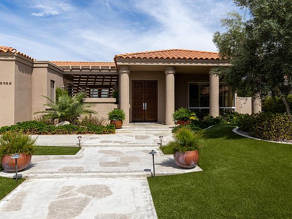 Meticulously kept, beautiful 3 bed and 4.5 bath home located in Monterra, an exclusive gated community in South Palm Desert. When you enter the home you are welcomed with high ceilings, sunlight, travertine flooring, and a spacious open floorplan. The chef's kitchen offers granite countertops, stainless steel appliances, and a Sub-Zero refrigerator. The home features multiple fireplaces in the living room and primary suite creating cozy, relaxing retreats. The primary suite features his and her baths along with a beautiful custom closet and storage space. The well proportioned guest rooms are ensuite as well. Enjoy breath taking western mountain views from the secluded, oversized back yard that provides plenty of space for dining, entertaining, or lounging by the pool. Large three car garage comes equipped with custom cabinetry and epoxy flooring. The home is sold partially furnished per the sellers inventory list. Located must minutes from El Paseo where you can enjoy dining, shopping, and the McCallum Theater to take in a show. Welcome to your desert retreat!