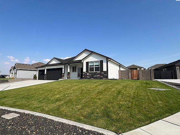 MLS# 286938 Your Dream Rambler Awaits in Pasco! Welcome to this stunning 3 bed, 2 bath Sandhollow-built rambler, perfectly situated on a corner lot in one of Pasco’s most desirable neighborhoods just a short walk from Chiawana High School!Step inside and be greeted by a thoughtfully designed open-concept layout, featuring upgraded, high-grade laminate flooring throughout the main living areas, both beautiful and durable. The spacious kitchen is a showstopper with granite countertops, custom Huntwood cabinetry, and a gas range, while both bathrooms shine with elegant quartz countertops. A cozy gas fireplace anchors the living room, making it the perfect place to relax.This home doesn’t just look good, it works hard for you too. The versatile den is ideal for a home office, playroom, or guest space.But let’s talk about the garage, because this one is a game-changer. With space for four cars, or just extra depth for boat or RV storage, it’s a rare find that checks all the boxes for your vehicles, toys, and hobbies.Outside, the fully landscaped yard is built for both beauty and practicality. You’ll love the block retaining wall and full fencing with convenient 4-foot and 8-foot gates already installed. Entertain, garden, or just enjoy your private outdoor space with ease. Plus, the back patio includes a gas stub for BBQs, perfect for summer evenings.With underground sprinklers, drip lines, and low-maintenance landscaping rock already in place, keeping your yard lush and green couldn’t be easier.Located close to schools, shopping, and dining, this home blends luxury, function, and convenience in one incredible package.Don’t miss your chance to call this home yours, schedule your showing today!