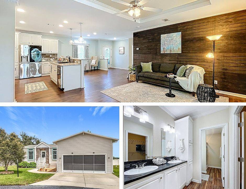 MOVE IN READY! 3 Bed + 2 Bath 2017 home in 55+ Woodlands at Church Lake includes 2 car garage and expansive screened rear porch. Welcome home to retirement living at its finest at 7309 Flowering Tree Cir. Located in the highly desirable 55+ community, The Woodlands at Church Lake in Groveland, FL! This exceptional home is waiting for YOU as a forever home, second home or your seasonal getaway! Upon entering your residence you'll notice the stunning glass front door, high ceilings, crown molding, top quality LVP flooring throughout, open concept flow of the Kitchen - Living Room - Dining Room featuring counter seating at the large Kitchen island, tiled backsplash, Formica countertops with crescent edge, stainless steel appliances, PLUS all appliances remain! Living Room features a custom designed wood plank wall and easy access to your generously sized screened rear porch, with NO STEPS. The split bedroom layout offers privacy for your guests with the guest bathroom offering a tub/shower combination with single vanity. Primary bedroom is peaceful and serene with an ensuite offering a large walk-in closet, dual vanity, tiled walk-in shower with glass sliding doors. Interior Laundry Room is located between the garage entry and Kitchen, includes a full-size washer and dryer. All windows are double pane with blinds and offer tons of natural light. The floor plan for this home is provided in the photos. 1 YEAR HOME WARRANTY INCLUDED! Come relax at this lakeside community and enjoy the Florida lifestyle and endless resort style amenities! This PET FRIENDLY community includes a fitness center with sauna, 2 outdoor swimming pools PLUS hot tub, pickleball, basketball, tennis courts, computer center with free wifi, RV/boat storage area, boat ramp with fishing lake, driving range & putting green, ping pong, water aerobics, bocce ball, shuffleboard, dog park, clubhouse, billiards, and MANY planned activities with community events! Conveniently located between Clermont and Leesburg off Hwy 27...within minutes of major highways, hospitals, shopping, local parks and medical facilities. You can drive to the beaches and major attractions within an hour. This could be yours! Call today for your private tour before it's gone.