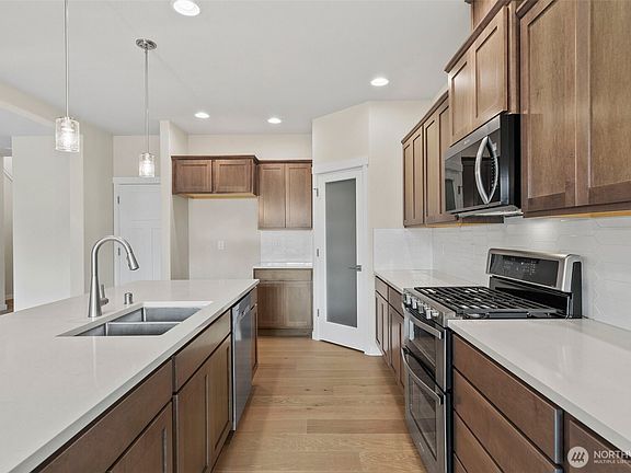 Under construction in Skyview Estates, the Birch offers 2,432 sq. ft. of comfortable two-story living. All bedrooms are located upstairs, including one that is oversized that can easily serve as a bonus, guest suite, or office. The main level showcases an open kitchen with quartz counters, walk-in pantry, Charcoal Maple shaker cabinetry, and a gas range. Engineered hardwood enhances the entry, kitchen, and dining, while quartz surfaces and quality details are carried throughout. A covered patio, fully landscaped yard, and privacy fencing create a welcoming outdoor space. Sought-after Tumwater location near schools, major shopping, and quick freeway access. Visit today & discover how you can make Skyview Estates your home!