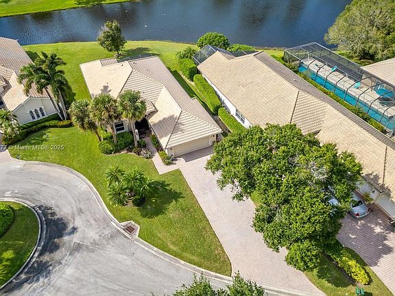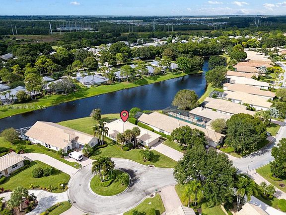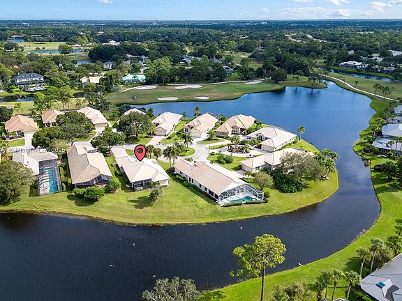 Welcome to this beautiful 2BR+Den, 2BA, 2CG single-family home in the highly sought-after PGA Village! Step through the gated entry & elegant French doors into a bright living space. Inviting kitchen features wood cabinets, granite countertops, & newer SS appliances. Enjoy stunning lake views from the covered patio & extended screened-in lanai. Room for pool. Thoughtful split layout offers privacy & functionality, with two spacious bedrooms and office with custom-built-in wood cabinets and a wine cooler. Accordion shutters throughout for peace of mind. Extra-long driveway on cul-de-sac lot. Resort-style living surrounded by championship golf courses, lush landscaping, & world-class amenities, PGA Village offers an unparalleled Florida lifestyle. Furniture is included at no cost. Must see!
