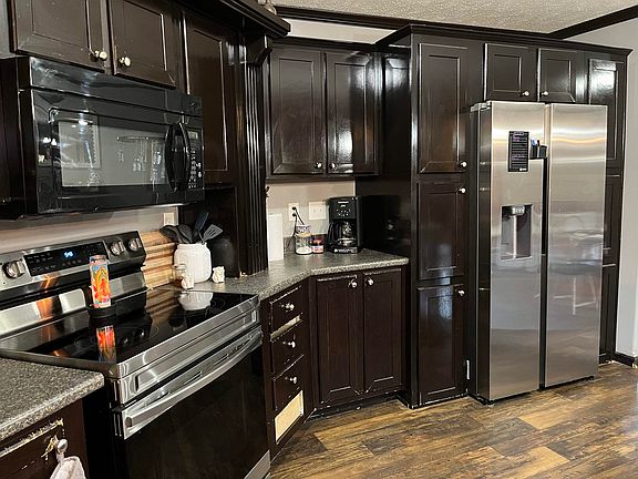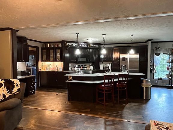 When you walk in to this house, nothing feels like a manufactured home. This open floor plan is large and welcoming. The large living room has a fireplace to burn wood as a backup heat source. The kitchen is complete with all stainless steel appliances and washer/dryer (all purchased new in Nov 2022) that convey with the property. Small desk area is built in as well. The master bedroom, found on the left end of the house, has plenty of room for a king size bed and includes a walk in closet. The large master bath includes a jet tub for relaxing, dual sinks, walk in shower, and lots of storage. Two more bedrooms, found on the right end of the house, are large and spacious. This Home sets on 3.2 acres and includes a 10x20 shed. New roof installed August 2023. Septic was redone in June and HVAC was serviced in May. All damaged siding and under-skirting is in the process of being replaced. There is a new privacy fence and a deck being built that will be finished before closing. Everything has been taken care of for you. Now make this house your new home!