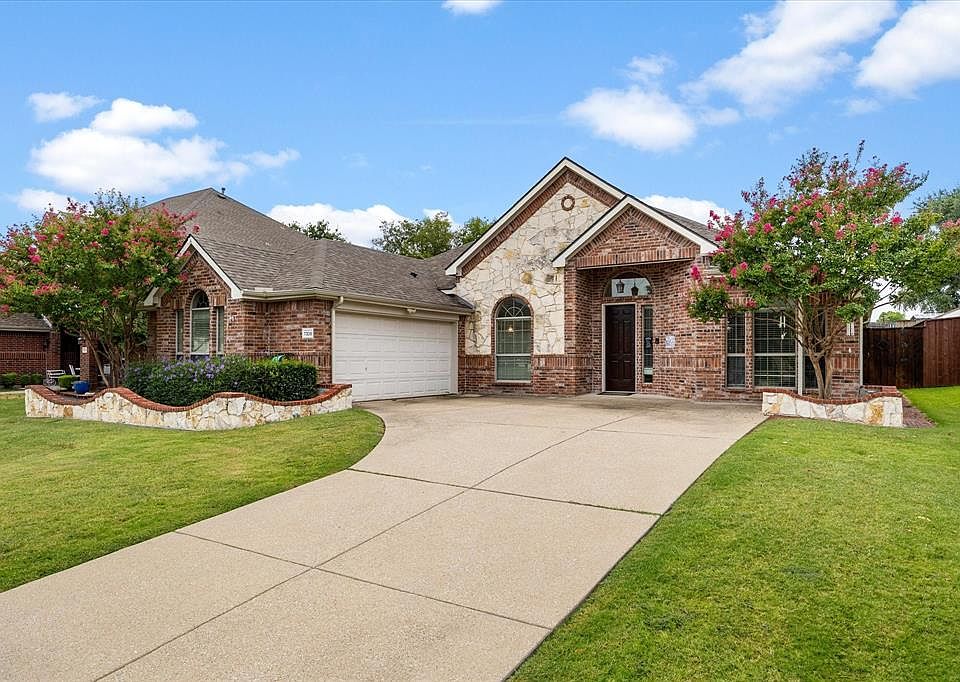 Step into this beautifully maintained 4-bedroom, 2.5-bathroom gem nestled in the heart of Sachse. This exceptional property combines charming curb appeal with modern conveniences, making it the perfect sanctuary for those seeking comfort & style. Featuring a 2-car garage, this residence sits in a tranquil neighborhood, ensuring peaceful living minutes away from urban amenities. Upon entry, be greeted by an open & inviting floor plan, designed to maximize natural light & space. The expansive living area, complemented by high ceilings, offers an ideal setting for both relaxation & entertainment. Create memorable meals in the modern kitchen, boasting sleek granite countertops, ample cabinetry, & built in appliances that make meal preparation a delight. The primary suite serves as the perfect retreat, complete with a spacious layout & a private ensuite bathroom featuring dual vanities, a soaking tub, & a separate shower. Each additional bedroom offers generous space, providing flexibility for a guest room, home office, or hobby area. The exterior of this residence is just as impressive. Crafted with a stunning combination of stone & brick, the home's façade is both timeless & low-maintenance. The lush, landscaped backyard provides a wonderful space for outdoor gatherings or simply enjoying the Texas sunshine. The patio area invites alfresco dining & summer barbecues, offering countless opportunities to entertain guests or unwind in privacy. Discover the perfect blend of comfort, function, & style in this exquisite Sachse property. Enjoy the benefits of suburban living with convenient access to schools, shopping, dining, & major highways. Don’t miss your chance to make this charming oasis your forever home.