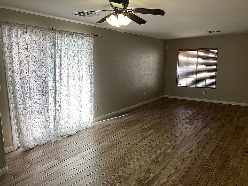 Fresh and clean! Gated 3 Bedroom with garage, granite kitchen, stainless 5 burner range, tile floors throughout living room and kitchen, Super low maintenance exterior (HOA takes care of front) and back is beautiful pavers! Great for entertaining! Huge walk in Master closet, each bedroom has ceiling fan, laundry area is upstairs. All bedrooms upstairs. Living room is enormous! Very open floor plan. Beautiful staircase. Must see! Owner is responsible for HOA, trash and sewer. Tenant is responsible for electricity, gas & water. No smoking allowed! Small pets allowed additional security deposit will be required.