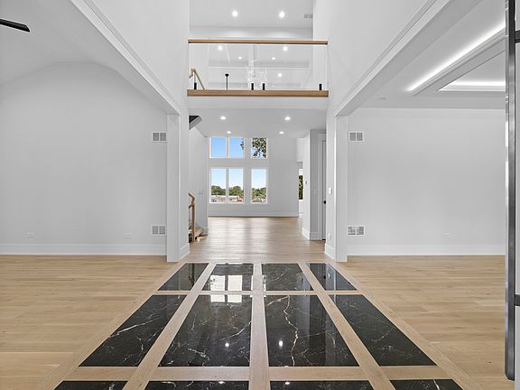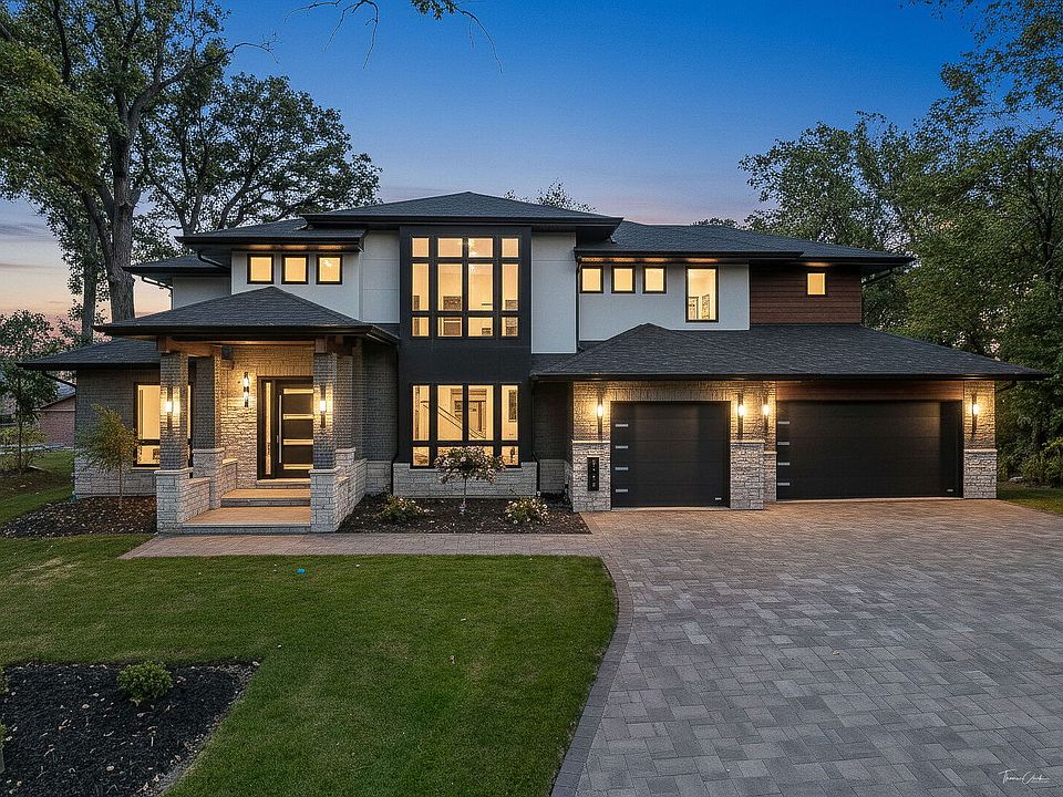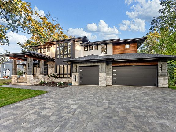 This breathtaking California-inspired estate is a masterpiece of design and craftsmanship, set on over half an acre of wooded privacy with a long, illuminated paver driveway that creates an unforgettable arrival. Built from the ground up with full foam insulation, the home showcases a striking exterior of stucco, Hardy siding, stone, and brick, while walls of glass invite natural light into every room. Inside, soaring ceilings with a dramatic chandelier and glass railings lead into an open-concept family room anchored by a European-imported water-vapor fireplace that releases a mist effect, shifts colors, and even humidifies the air. The chef's kitchen is extraordinary, featuring custom European cabinetry and a one-of-a-kind limited-edition island crafted from rare imported granite that seamlessly continues as the backsplash, complete with integrated stove and pot-filler. Appliances include a Sub-Zero refrigerator, KitchenAid package, induction cooktop, and modern designer hood, while integrated LED lighting illuminates every cabinet, vanity, and even bathroom shelving. Luxury details abound, including a smart powder room with touch-sensing, self-cleaning toilets, whole-house speakers, hardwood flooring on the main levels, spa-like baths, a fully finished 3-car garage with epoxy flooring, and upstairs laundry. The second level is highlighted by a custom-designed dream closet that feels like a private boutique, offering the ultimate in storage and style. The walkout lower level with high ceilings, wet bar, fireplace, and a full bathroom is designed for entertaining on a grand scale or private retreat. Every finish, from the chandeliers to the imported stones, was hand-selected to the highest standard, making this one of the most extraordinary homes you will ever experience-a vision of modern luxury brought to life through unparalleled craftsmanship.