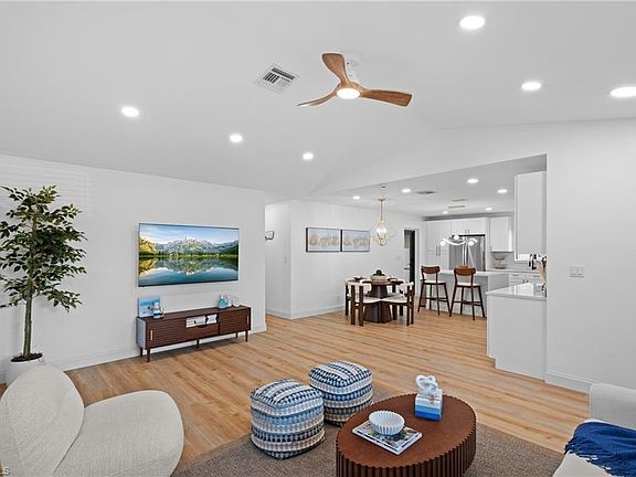 FULLY RENOVATED and FULLY FURNISHED with a BRAND-NEW SALTWATER POOL in the heart of Naples Park. This stunning 3-bedroom 2-bath home with ES IMPACT WINDOWS AND DOORS offers a perfect blend of luxury, comfort, and sophistication. You'll find upgrades galore within this great room floor plan with vaulted ceilings including a brand-new kitchen with quartz countertops, luxury vinyl plank flooring, elegant light fixtures, quartz waterfall island, custom cabinetry, stainless steel appliances, a bar with extra storage and wine cooler, and surrounded by designer furnishings and accessories. Fully remodeled bathrooms are equipped with custom vanities with quartz tops, LED light fixtures, custom shower glass with wall niches; each offering their own unique contemporary aesthetics. Be the first to enjoy the brand-new heated saltwater pool with a large sun shelf, light features, and spillover waterfall feature encompassed within a large backyard with new sod and a new vinyl fence. Additional upgrades include, newer roof, new hot water heater, new flat top grill, a screened lanai with refinished wood burning fireplace, updated electrical panel, washer/dryer, new oversized impact 2 car garage door, and contemporary exterior lights. This home is ready for immediate occupancy for either full-time residents, seasonal residents, or a savvy investor looking for immediate cash flow. 731 102nd Ave is HIGH AND DRY and flood insurance is not required. The home is also centrally located to all that Naples has to offer and is also within walking distance of the white sugar sand beaches at Vanderbilt beach and Wiggins Pass, Mercato for shopping and dining, the Ritz Carlton, & La Playa beach resorts, and dozens of restaurants and entertainment venues.