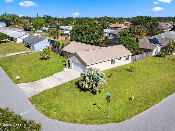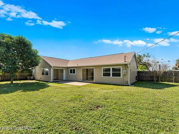 Fall in love with this thoughtfully updated 3-bedroom, 2-bathroom home offering an additional office/flex space -perfect for work, fitness, hobbies, or a 4th bedroom! Situated on an oversized 0.29-acre corner lot in the coveted Port Malabar School District w/ no HOA! Move-in-ready! Enjoy luxury vinyl plank flooring throughout -no carpet! The spacious kitchen offers Stainless appliances-the oven/range & dishwasher are brand new! Major upgrades include a NEW ROOF (2024), NEW HVAC (2025), and energy-efficient double-paned windows. The expansive fenced backyard with 2 mango trees and one peach tree is ideal for kids, pets, and outdoor entertaining. With its modern updates, generous layout, and convenient location just minutes to L3Harris, Turkey Creek Sanctuary Park, and Brevard's beautiful beaches!