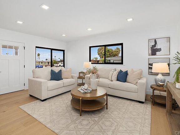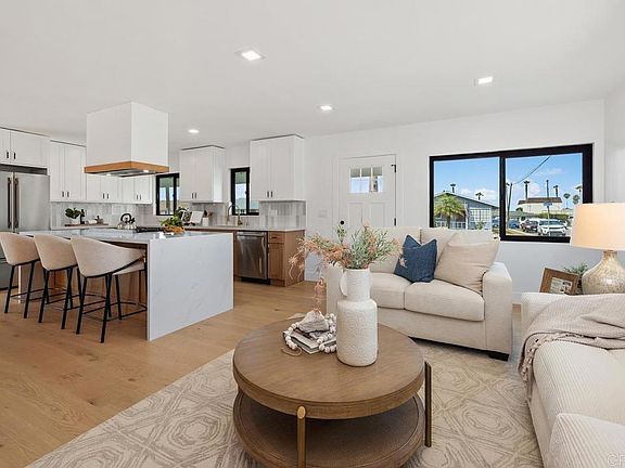 Beautifully updated 4-bedroom, 3-bathroom home on a corner lot in West Chula Vista with a versatile layout perfect for multigenerational living or rental income. The main level features an open-concept kitchen, family room, and dining area, as well as three bedrooms and two full bathrooms. The kitchen includes a center island with a 6-burner range, waterfall quartz countertops, new cabinetry, and stainless steel appliances. All bathrooms are fully remodeled with elegant tile work and frameless glass enclosures. A standout feature is the potential Junior ADU on the right side of the home, offering a ground-floor kitchenette and concealed private entrance. Upstairs, a quiet living area with sweeping views leads to an oversized primary suite, featuring a luxurious soaking tub, a curbless shower, and a large walk-in closet—all located above the garage. Additional upgrades include wide-plank wood-look flooring, recessed lighting, sleek black-trim dual-pane windows, new doors, and an indoor laundry room. The property also offers potential for RV or boat parking, adding even more flexibility. Enjoy walkability in a quiet neighborhood just blocks from the Gaylord Pacific Resort and Chula Vista Bayfront Park. This home is move-in ready with high-end finishes in one of the region’s most exciting growth areas.