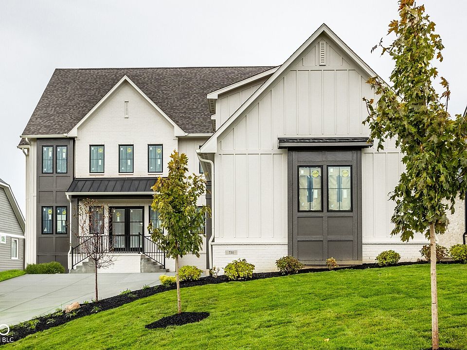 Designed for luxury living, this exquisite new build by Foxlane Homes blends timeless luxury with thoughtful design-all set against the breathtaking backdrop of the championship golf course at Chatham Hills. With expansive windows, an open-concept layout, and two story great room the main floor feels light and airy and allows for views from almost every space. Sliding glass doors seamlessly connect the indoors to a covered patio, where a built-in fireplace and outdoor kitchen with grill make year-round entertaining possible. The chef-inspired kitchen is equal parts beautiful and functional, showcasing a large center island, quartz countertops, high end commercial grade appliances, and a hidden walk-in pantry with custom storage. Adjacent to the kitchen, the dining room offers a warm, inviting space overlooking the backyard and rolling fairways. The main-level primary suite is a serene retreat with a beamed ceiling and spa-like bath that features dual vanities and a spacious walk-in shower. A secondary main-floor guest or in-law suite, along with a private pocket office, provides flexibility for the lifestyle desired. Upstairs, three additional bedrooms each include their own en-suite bath, creating ideal accommodations for family or guests. The finished lower level is made for gathering-complete with a cozy lounge area, guest bedroom, full bath, fitness room, and a striking glass-enclosed bourbon bar perfect for relaxation and conversation. Living in Chatham Hills offers resort-style amenities right outside your door, including indoor and outdoor pools, a state-of-the-art fitness center, private dining, walking trails, pickleball and tennis courts, and of course, world-class golf.