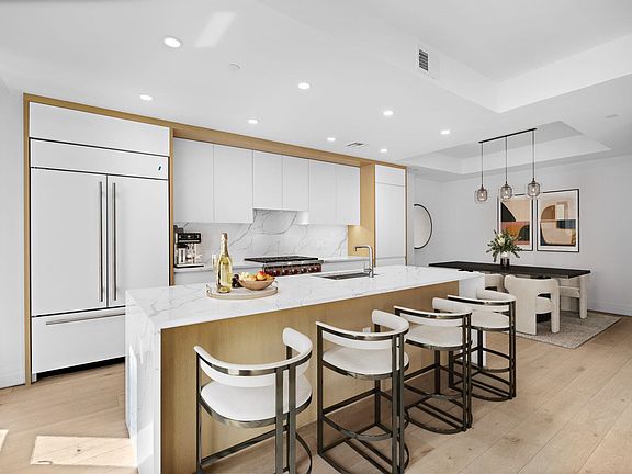 Residence 32B is a beautiful, light-filled, newly-built home that offers loft-style living in the most sought-after, amenity rich and luxurious community in Hoboken. The home is part of the special Boutique Collection and includes a fabulous 533 square-foot, private backyard. With 9-foot ceilings and floor-to-ceiling windows throughout, this home has an abundance of natural light. This 1,639 square-foot home features an open design, three generously sized bedrooms, two full bathrooms and a powder-room located just off the Great Room. The large, suburban-sized, designer kitchen features a center island with seating for four, elegant white Calcutta Laza kitchen countertops, custom white kitchen cabinetry framed with oak trim and a pull-out pantry, top-of-the line kitchen appliances including a built-in Sub-Zero refrigerator/freezer, Wolf gas range, oven and microwave drawer, Bosch dishwasher, and an under counter wine/beverage refrigerator. The kitchen opens to the spacious dining room and adjoining living room making an ideal place for gathering with family and friends. The primary bedroom suite includes a huge walk-in-closet and a spa-like bathroom with an over-sized walk-in shower, separate soaking tub and dual sink vanity. All the bathrooms include custom wall-hung white cabinetry with white Glacier honed marble countertops. This home includes an in-residence laundry room equipped with a Bosch washer and dryer, beautiful 7.5-inch European white oak plank hardwood floors, abundant closets, a private deeded parking space in the onsite garage, an on-site private storage unit, and a key-less, programable Latch door entry system. Wonder Lofts is newly constructed luxury, loft style building, built to LEED Gold standards, within the meticulously restored Wonder Bread Factory in Hoboken, NJ. This full-service, 83-unit condominium offers a world-class suite of shared indoor and outdoor amenities comprising 14,400 square feet that create an elevated lifestyle at Wonder Lofts. The highest rooftop, with its stunning 360-degree views of the Manhattan skyline, all of Hoboken and beyond, is a beautifully landscaped patio lounge featuring an infinity-edge swimming pool, lounge chairs, a circular outdoor bar underneath the restored water tower, gas barbeque grills, a fire pit, and abundant dining and lounge seating areas. An indoor residents’ lounge on the second floor features a large and elegant living room that opens to a lushly landscaped, outdoor terraced patio and garden with seating areas. A floor-to-ceiling brick, double-faced fireplace separates the living room from an open concept dining room and entertainment kitchen, and an adjacent billiards and game room. Enjoy the building’s children’s playroom, complete with padded floors, bean bag seating, toys, and books, as well as a fully equipped children’s art room ideal for fostering individual and group creativity and fun. A full gym equipped with the latest cardio and strength training equipment and a separate fully equipped yoga/flex studio keeps residents healthy in body and mind. Wonder Lofts also features a two-story 24-hour attended lobby, an additional large residents’ lounge with fireplace and co-working/study area, a secure onsite parking garage with electric car charging stations, several common bicycle parking areas, and a pet grooming area. Wonder Lofts offers building-wide, secure high-speed Wi-Fi, and a building access control system that offers automated package delivery notification. Each residence includes its own private outdoor living space.