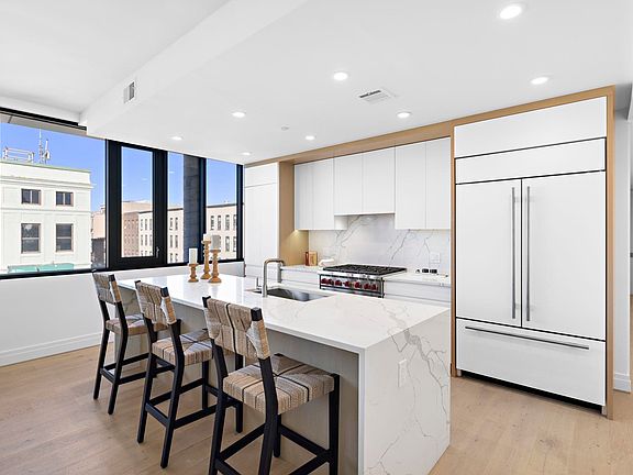 Residence 53 is a beautiful, light-filled, newly-built home that offers loft-style living in the most sought-after, amenity rich and luxurious community in Hoboken. The home is part of the special Boutique Collection and includes a fabulous 193 square-foot, private, detached rooftop cabana. With 9-foot ceilings and floor-to-ceiling windows throughout, this home has an abundance of natural light. This 2,150 square-foot home features an open design, four generously sized bedrooms, three full bathrooms and a powder-room located just off the entrance. The large, suburban-sized, designer kitchen features a center island with seating for four, elegant white Calcutta Laza kitchen countertops, custom white kitchen cabinetry framed with oak trim and a pull-out pantry, top-of-the line kitchen appliances including a built-in Sub-Zero refrigerator/freezer, Wolf gas range, oven and microwave drawer, Bosch dishwasher, and an under counter wine/beverage refrigerator. The kitchen opens to the spacious dining room and adjoining living room making an ideal place for gathering with family and friends. The primary bedroom suite includes a huge walk-in-closet and a spa-like bathroom with an over-sized walk-in shower, separate soaking tub and dual sink vanity. All the bathrooms include custom wall-hung white cabinetry with white Glacier honed marble countertops. This home includes an in-residence laundry room equipped with a Bosch washer and dryer, beautiful 7.5-inch European white oak plank hardwood floors, abundant closets, a private deeded parking space in the onsite garage, an on-site private storage unit, and a key-less, programable Latch door entry system. Wonder Lofts is newly constructed luxury, loft style building, built to LEED Gold standards, within the meticulously restored Wonder Bread Factory in Hoboken, NJ. This full-service, 83-unit condominium offers a world-class suite of shared indoor and outdoor amenities comprising 14,400 square feet that create an elevated lifestyle at Wonder Lofts. The highest rooftop, with its stunning 360-degree views of the Manhattan skyline, all of Hoboken and beyond, is a beautifully landscaped patio lounge featuring an infinity-edge swimming pool, lounge chairs, a circular outdoor bar underneath the restored water tower, gas barbeque grills, a fire pit, and abundant dining and lounge seating areas. An indoor residents’ lounge on the second floor features a large and elegant living room that opens to a lushly landscaped, outdoor terraced patio and garden with seating areas. A floor-to-ceiling brick, double-faced fireplace separates the living room from an open concept dining room and entertainment kitchen, and an adjacent billiards and game room. Enjoy the building’s children’s playroom, complete with padded floors, bean bag seating, toys, and books, as well as a fully equipped children’s art center ideal for fostering individual and group creativity and fun. A full gym equipped with the latest cardio and strength training equipment and a separate fully equipped yoga/flex studio keeps residents healthy in body and mind. Wonder Lofts also features a two-story 24-hour attended lobby, an additional large residents’ lounge with fireplace and co-working/study area, a secure onsite parking garage with electric car charging stations, several common bicycle parking areas, and a pet grooming area. Wonder Lofts offers building-wide, secure high-speed Wi-Fi, and a building access control system that offers automated package delivery notification. Each residence includes its own private outdoor living space.