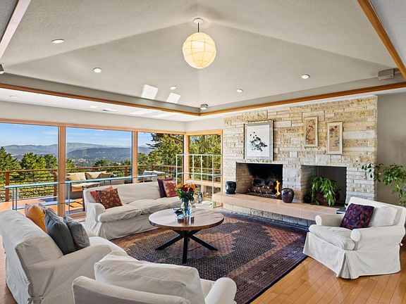 Beautifully renovated nestled in the trees of Skyline Forest, this stunning home offers breathtaking mountain and bay views, a serene backdrop for everyday living. An open-concept design seamlessly integrates the kitchen, dining, and living areas in a spacious inviting atmosphere. The living room features a gas fireplace and coffered ceiling, light hardwood floors flow throughout the main living spaces. The kitchen is a chef's delight, with stainless steel appliances, granite countertops, a breakfast bar, pantry and ample cabinetry. Sierra windows and sliding doors frame the stunning views and lead you to a deck that spans the width of the house, the perfect place to enjoy the surrounding beauty of nature. The primary bedroom is ensuite, with a tiled bath that exudes spa-like tranquility, including a separate windowed shower, spa tub, dual sinks, and large walk-in closet. Natural light floods the vaulted ceiling space, enhancing its bright and airy feel. The lower level has two large bedrooms separated by a spacious family room. Additional conveniences include a big indoor laundry room and a whole-house water filtration system. Completing this exceptional home is a two-car garage, with ample storage and parking. This property is a true gem in Monterey, ready to welcome you home.