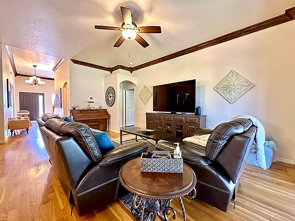 Stunning 4 bed 3 bath home located in Blue Heron Meadows! Shining hardwood floors, crown molding, grand ceilings, gas log fireplace and the open concept show well as you enter the home. The main level offers a fabulous open kitchen with island, dry bar, beautiful granite countertops, large dining area, bright/open living room, with large windows and sliding door that opens to the covered patio. The huge main level primary master suite comes with a 5 piece bath, jetted tub, his and her closets and access to the back patio. An additional bedroom/office, full bath and laundry room are also included on the main floor. Upstairs you will find a large workout/game room, two additional bedrooms, full bath and access to the covered balcony providing wonderful views of the Colo. National Monument and Grand Mesa. Outside is park like, with a large lawn, peach trees, beautiful flowers, shade trees, rock fountain, gas fire pit, paved RV parking and privacy! In addition, a 24x20 ADU/workshop with electricity and heat is a wonderful addition to this amazing home!