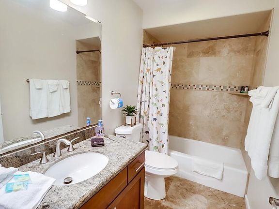 This unit has 3 full bathrooms and is fully equipped with a gourmet kitchen that features stainless steel appliances, cherry cabinets, granite counter tops and dining area that create an inviting cooking and entertaining ambiance. Added amenities include brushed nickel fixtures and Travertine floors throughout to compliment the contemporary features, a walk-in closet in the master bedroom and plenty of closet space in the other two bedrooms, your own full-sized front-loading washer/dryer, wireless internet access.