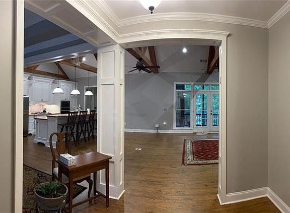 Welcome home to this beautiful estate home! This gorgeous custom built home has an open floor concept. As you enter through the foyer, you're greeted by a soaring ceiling and spectacular beams in the open concept great living spaces. Beautiful hardwood floors are featured throughout the main living areas and berber carpeting in all of the bedrooms. A large primary suite offers a main bathroom with a separate shower and soaker tub, a spacious walk-in closet and screened-in patio deck. Each secondary bedroom suite offers its own full bath. The spacious laundry room offers a washer and dryer with a large laundry sink. The kitchen includes custom cabinetry, a side by side refrigerator, a five burner gas stove top and a double oven with convection. This home also has a charming screened patio deck accessible from the main living room and primary bedroom with views overlooking a stunning private backyard oasis. Nestled on a primarily wooded lot with no HOA fees, you're offered all of the comforts of city living but with the peace and tranquility that southern comfort has to offer.