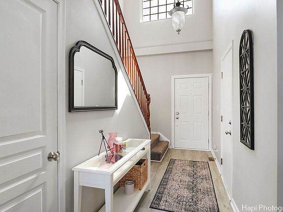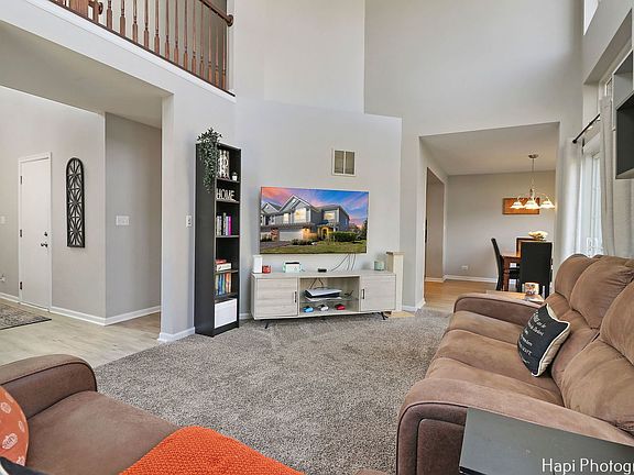 Discover the highly sought-after Carlyle model in Cambridge Lakes-this end unit offers extra privacy and charm! Featuring 3 bedrooms and 2.1 bathrooms, this home welcomes you with a bright, inviting foyer leading to a stunning 2-story family room filled with natural light. The newly remodeled kitchen is a chef's dream with stainless steel appliances, 42" elegant white cabinetry, a convenient closet pantry, and a cozy breakfast nook. Upstairs, you'll find 3 spacious bedrooms, including a laundry area for added convenience. The luxurious owner's suite boasts a double sink vanity, a separate tub and shower, and a generous walk-in closet. The two additional bedrooms share a beautifully appointed full bathroom. Step outside to enjoy your private patio and professionally landscaped yard. The attached 2-car garage even includes an electric vehicle charger! Don't miss this incredible opportunity to live in a well-maintained neighborhood with easy access to I-90 and the Cambridge Lakes Community Center, clubhouse, pool, workout facility, and parks. This home is a must-see!