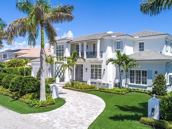 Fronting 100+/- feet on the deep-draft waterway, this new coastal-inspired estate provides a full service, marble-clad concrete dock on the seawalled shoreline. Approached by a sweeping marble paver circular motorcourt, this luxurious custom-built residence is glassed with waterside window walls that open to the Diamond-Brite sun splashed pool with spillover spa. Across from a terrace with summer kitchen, the lanai creates a true outdoor living room anchored by a stack stone fireplace. The immaculate landscaped grounds are designed for easy maintenance with special artificial turf.