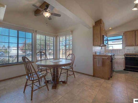 Great one-level home with FANTASTIC VIEWS of Buzzy's Ranch meadows with a large living room plus a cozy wood burning stove, and high ceilings with an open concept combining the dining room and kitchen. The kitchen has lots of storage, a breakfast bar, and a huge kitchen nook area for informal dining. There are three bedrooms with one having a wall of built-ins, perfect for a great office or bedroom. The master suite has two large closets, high ceilings and access to the backyard.