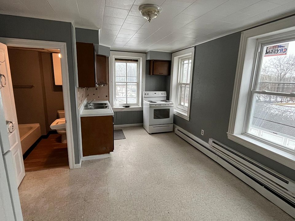 One year lease, tenant is responsible for the electric bill (heat, lights, stove, and hot water) owner pays for water, sewer, and trash.