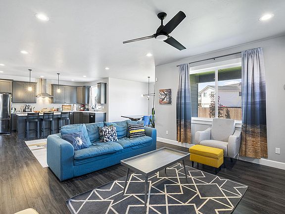 Located at the end of a quiet cul-de-sac in Redmond's desirable Megan Park community, this 2020-built home offers custom upgrades and a thoughtful layout. The main floor features a spacious open-concept kitchen with ample counter space—perfect for hosting large gatherings. Built-ins add charm and function to the entertainment area, while a dedicated office provides flexibility for remote work or study. Upstairs you'll find four bedrooms, a full guest bath, and a convenient laundry room. The generous primary suite includes custom lighting, dual vanities, a soaking tub, and a large walk-in closet. Outside, enjoy low-maintenance landscaping in the front yard and a backyard built for fun with a covered patio, lawn, and play structure. This home is not located on a busy street, offering peace and privacy. Plus, the new Dry Canyon Club and Tite Knot Coffee are just a short walk or drive away. This home has been very well taken care of and is ready for it's new owner.